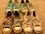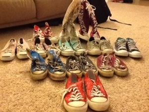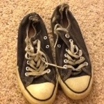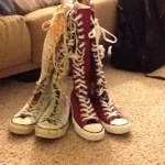 Let’s start backwards. The black pair were my very first pair of Converse, they are low top and wonderfully full of holes, as they should be after years of wear, tear and love. I purchased these with my own money, my mom refused to buy them for me “I’m not paying good money for canvas!” So I pulled out my own $10, yes, I said ten dollars! so not the case today!