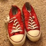 My last and final (really? Nah, there will be more, I can feel it) pair to tell you about are the pair I paid $35 for and my most special and sparkly Dorothy Ruby Sneakers! I la la la love these kicks! See how they sparkle? As you may remember, red is my favorite color and these are my red converse! I love wearing them to sporting events, they make me feel special and sparkly! Do you love them?!