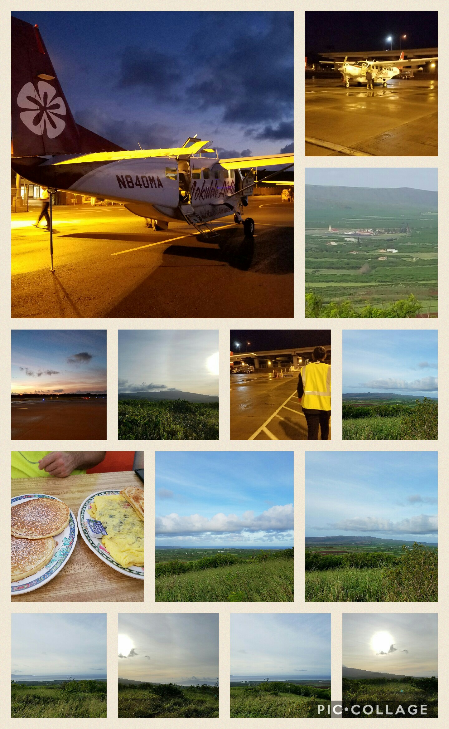 After dinner, they drove us to the airport, we hung out waiting for our puddle jumper back to Honolulu and when it was time, a private plane! Well, it was the same baby plane-let, we were just the only ones on it!