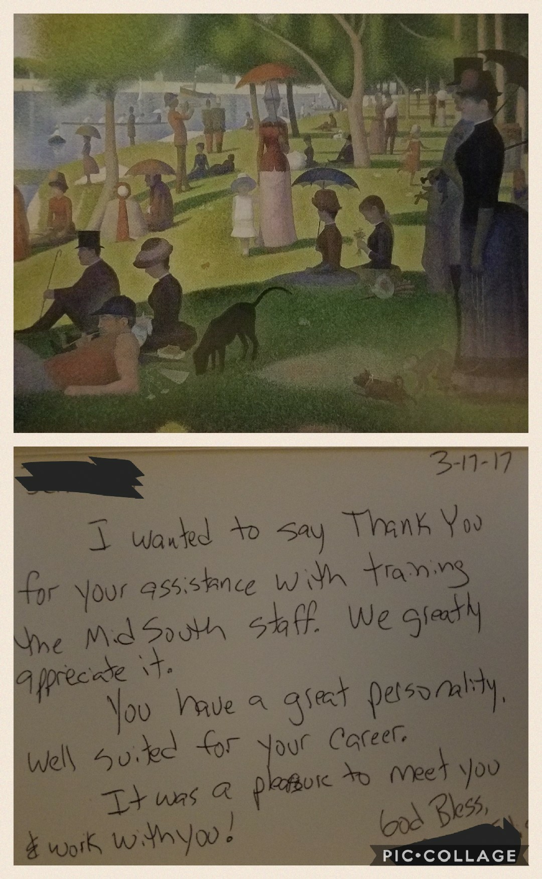 Today, when I was leaving, I found this card on my bag. It was from the SDS, the trainer, that I had worked with for the week.