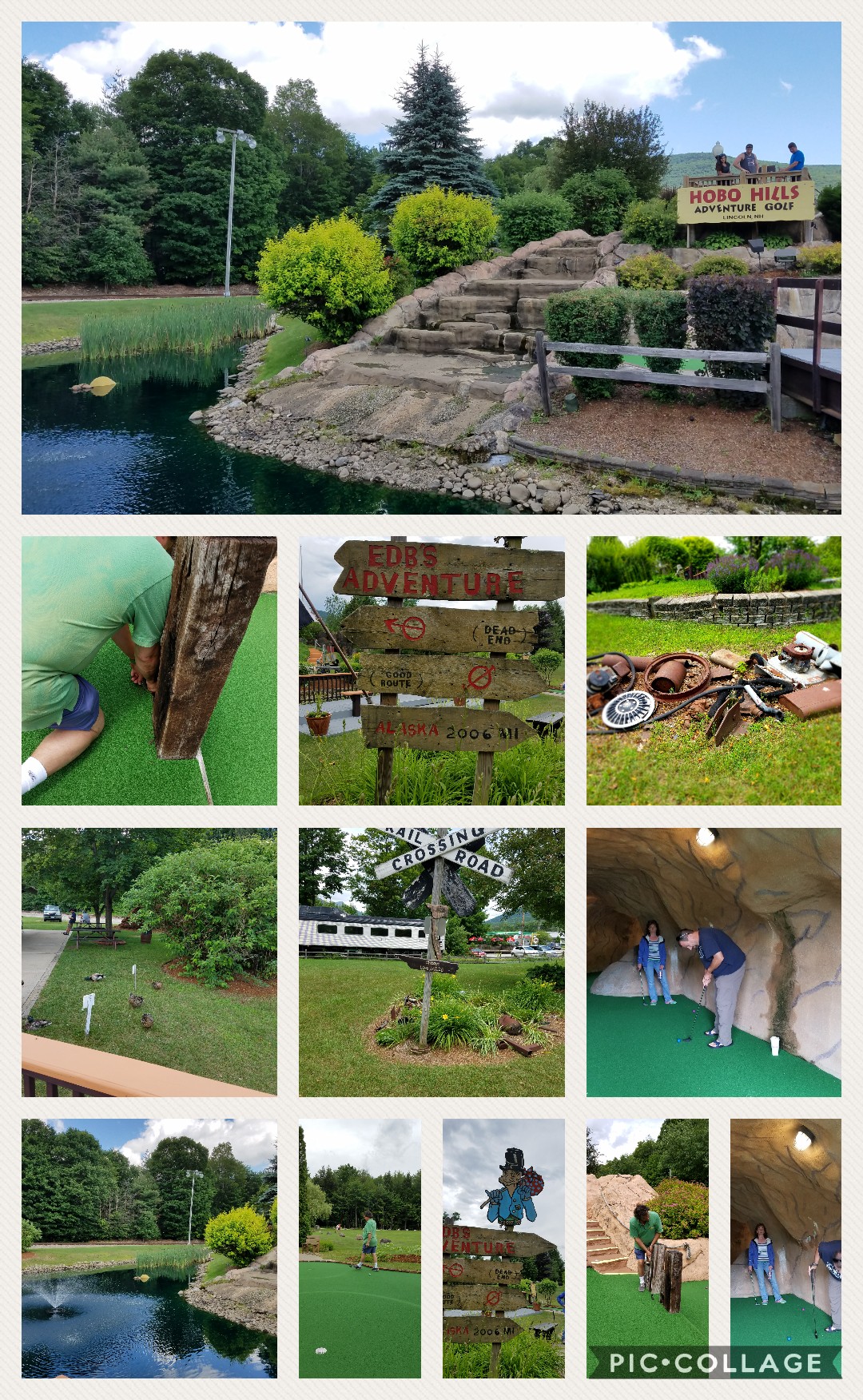 Got up, had breakfast with PSM, his brother and sister-in-law. Then we made a plan to go and play miniature golf, it was a lot of fun! We all got at least one hole-in-one! SM and I both got two! I still came in last, tied with my honey! It was a lot of fun! Oh, I said that, but it was!