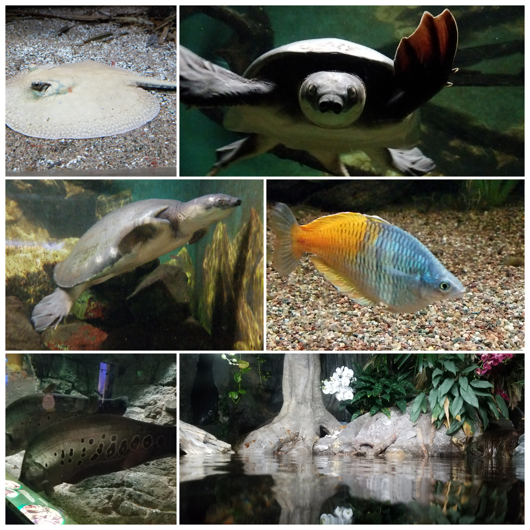 We got to pet sturgens, admire the baby crocs, talk to the different species of turtles, play find the fishes. Since it was evening, the lights in the exhibit rooms were very low as were the lights in some of the tanks, have to mimic their home environment.
