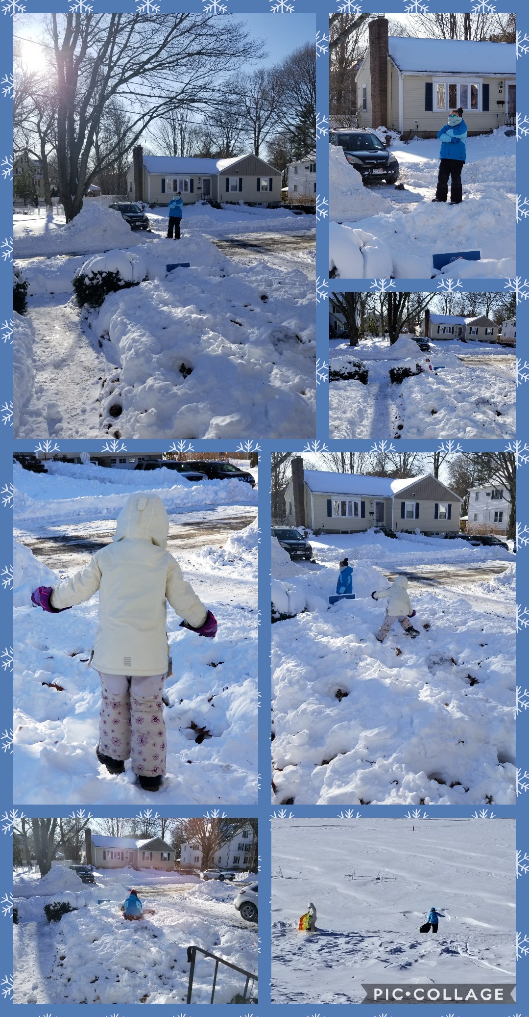 There was conquering the snow mountain across the street, sliding, climbing and snowball fighting! Then…let’s go sledding at the high school! Load up the car with tubes and toboggans and head to the high school. We made it up the hill, did three runs, two MGS and I were on the toboggan together, the last time, we raced EJS down the hill, awesome!