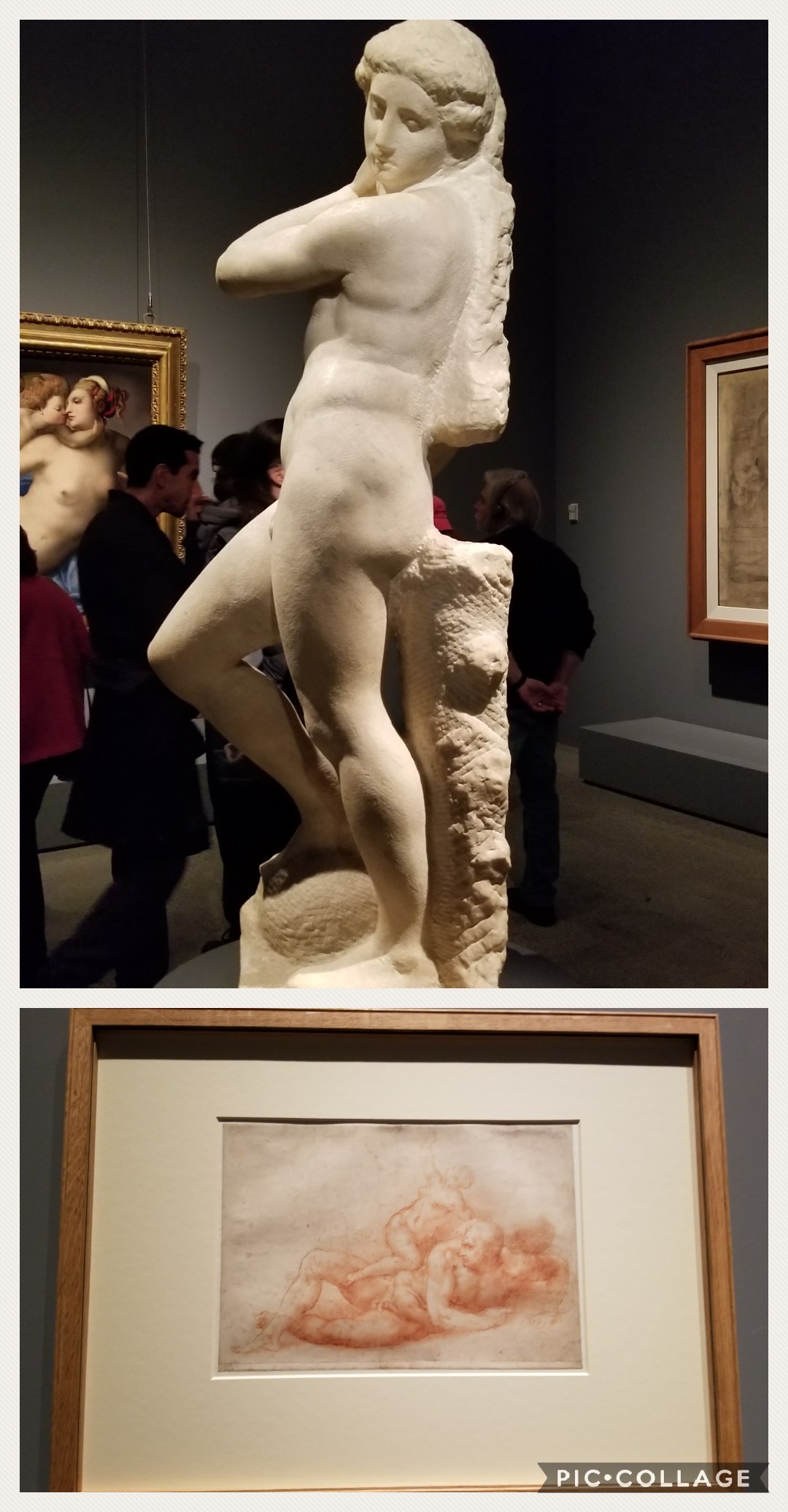 Then it was on to the Michelangelo exhibit, much darker, lighting wise than the other exhibits. It was sculpture, paintings, drawings and sketches, oh my! The hard part was there were so very many people, you really couldn’t get that close to any of them and with my lack of stature, it was hard to see some pieces at all!