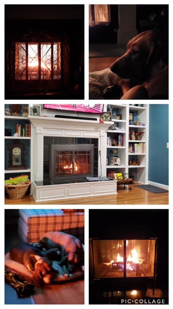 The embers are dying as I write to you, but it’s still such a lovely site, let me know when you want to come over to join me, PSM, and the pooches for a night in by the fireplace. Hey! You don’t even have to sit on the same side of the house! You can have a whole different room to yourself to enjoy the fire! HA HA!