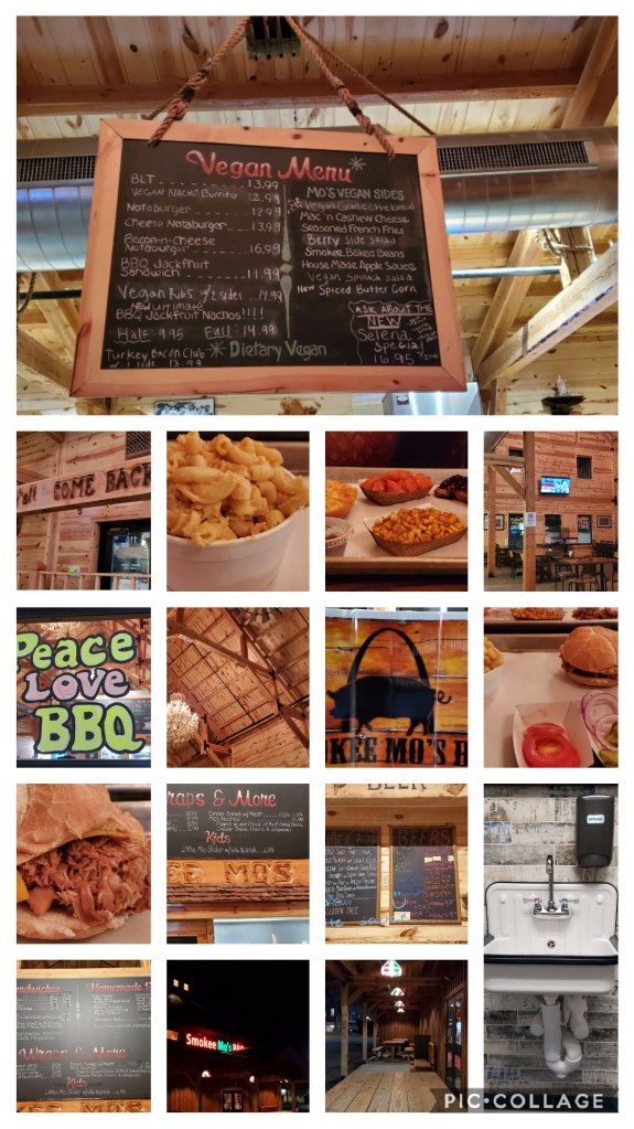PSM said let’s go out to dinner, I was up for it and started to look on the Happy Cow app. Vegan didn’t work in our area, so I selected options and a few more options came up, this time Smokee Mo’s BBQ, which offered VEGAN BBQ! What?! Let’s check it out! It’s only about 15 minutes from us. PSM said let’s go!