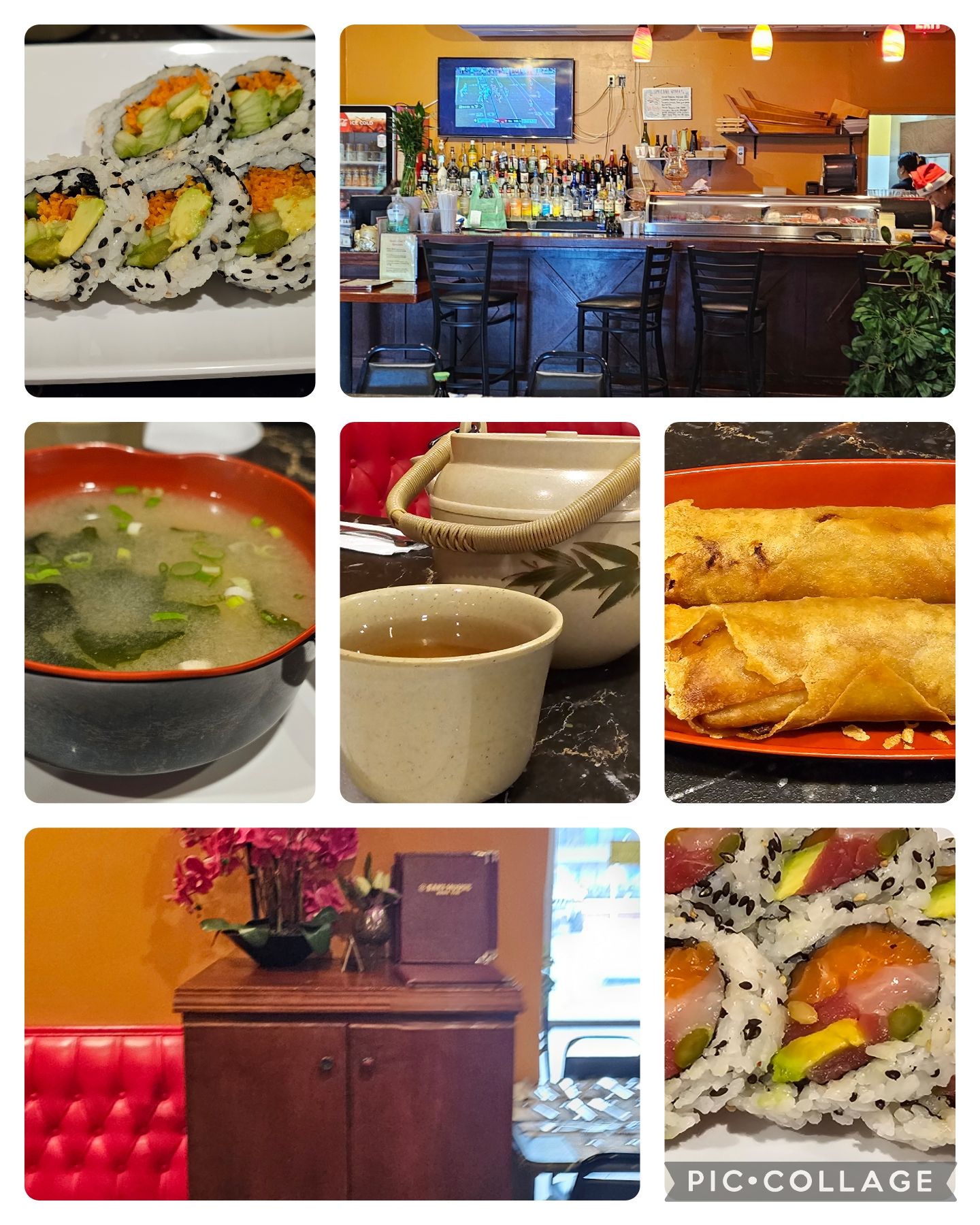 We orderd green tea, miso soup, sushi rolls, and spring rolls. The spring rolls were by far our favorite! The miso was flavorful but a little too salty for me, the sushi rice wasn’t the best, but I loved the avocado and cucumbers in the roll.