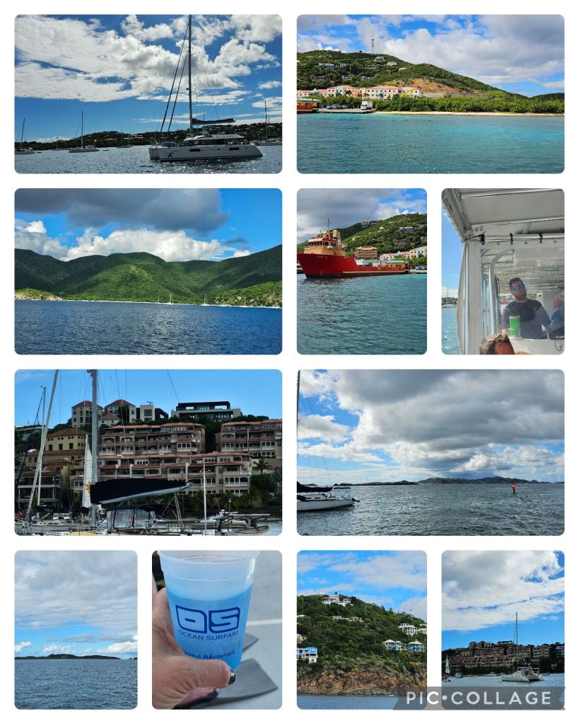 Back on the boat, the rum punch and painkillers were flowing as we headed back towards St John, but first…lunch at Pizza Pi VI in Christmas Cove of Great St. James. This was a floating pizza restaurant and it was great! You can see they have seating tied off the boat and we were stopped and the pizza was delivered to the boat! We had plain cheese and pepperoni and the pizza was pretty good! Yes, I ate it, when in Rome and all!