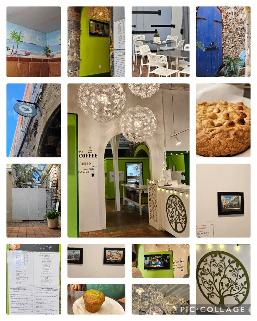 We were looking for a place for breakfast, specifically at the moment, some decaf coffee for PSM, someone recommended the Parley Cafe and when we found it, we were very glad we did! It was cozy, bright, tropical, everything it should be, and…smelling y u m! We got tea and coffee and two home made pastries, oh yeah!