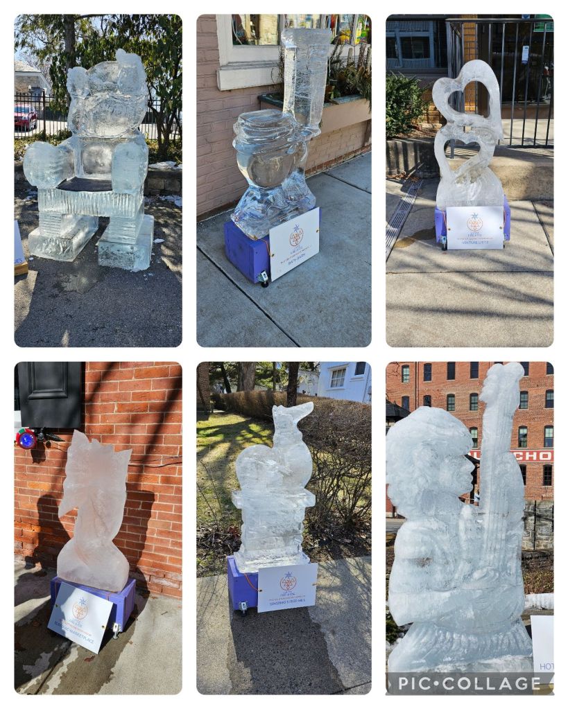 There were ice sculptures in Lititz Spring Park and along the streets, in front of different businesses. The ones that had been sitting in the sun were not faring as well, after 10 days, as the ones in the shade. There were a few really fun ones, all were beautiful, even if you couldn’t quite make out what they were. My two favorites were Santa diving down a chimney and a toilet, too cute!