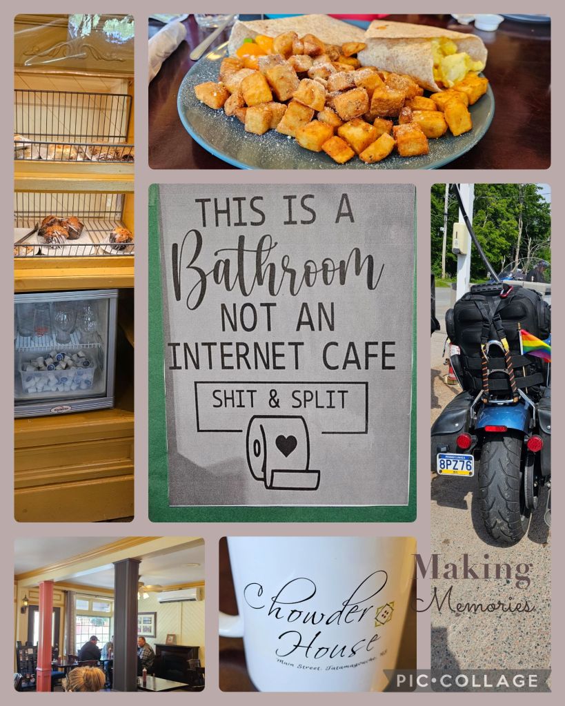 Wow, we’re coming up on the last two days of our trip! How does that happen? It feels like just yesterday we were loading up the bikes, hitting the road and meeting a rainstorm in NY. Well…here we are Day 8, if we’re talking the start of the trip in Vermont/New Hampshire, or Day 9, the day we started out, well…either way, we’re still here in Tatamagouche, well, at least for breakfast!