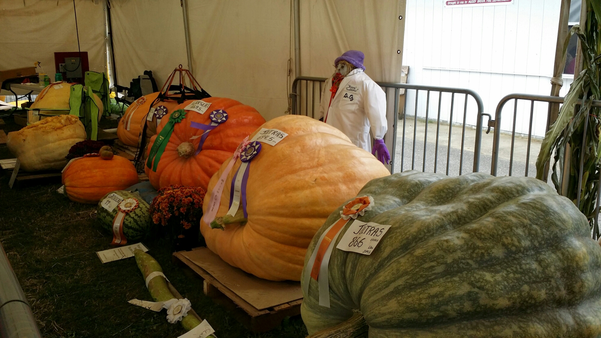 We went into some of the exhibition barns to see different competitors and entries. There were race cars and music and entertainment and giant gourds! Oh my!