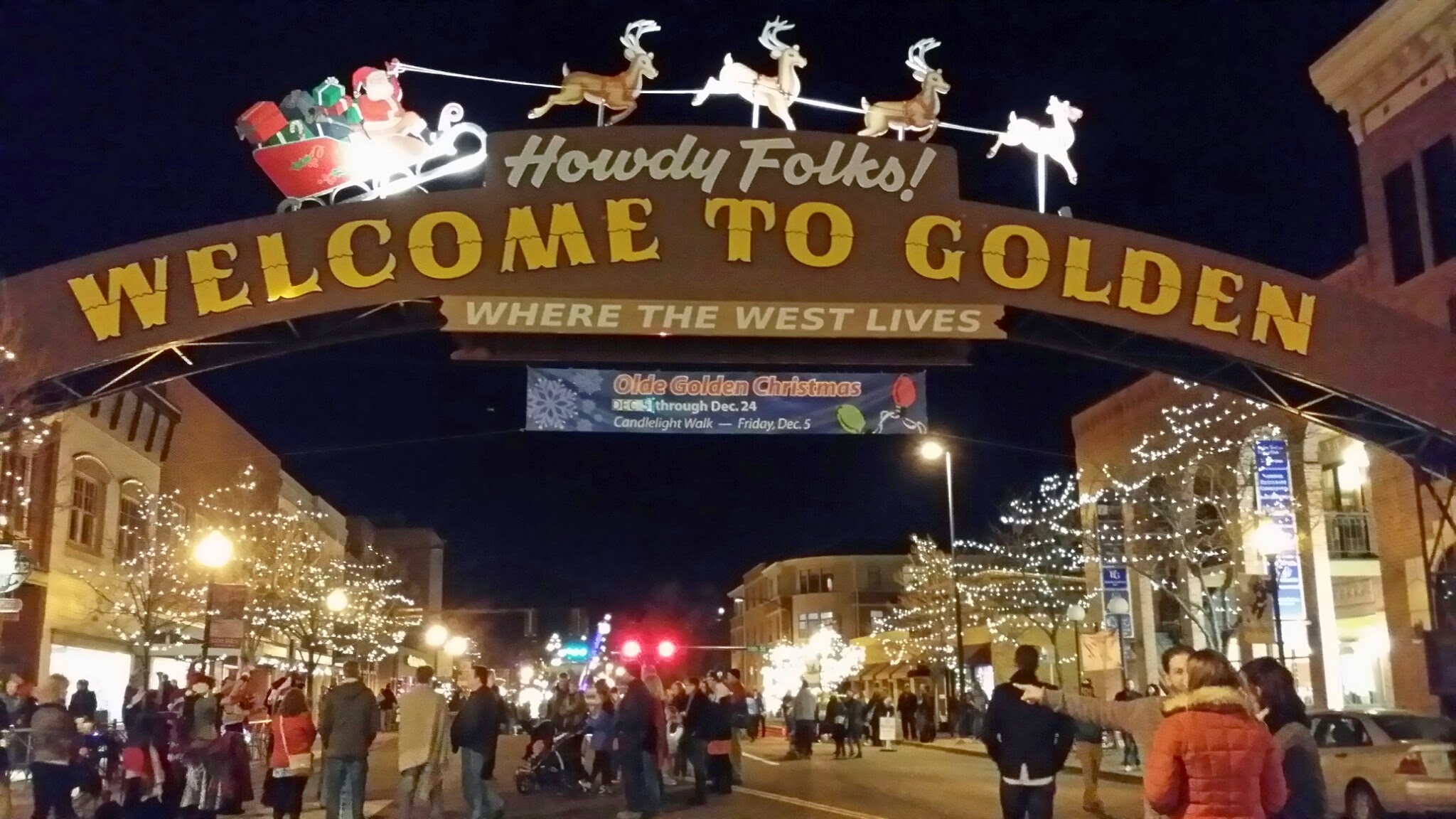 After I took my bounty back to the hotel, I decided it was time for a bite to eat and off to Golden I went. It turns out they were having a candlelight walk, everyone has a lit candle and walks while they sing Christmas carols. They are walking towards the end of town for the lighting of the Christmas tree, I was there and got to see it, charming!