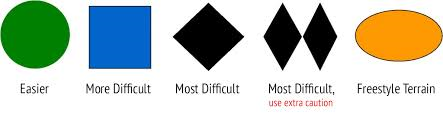 For those of you not in the know, there are symbols for each run, which is a path down the mountain and the symbols tell you the level of difficulty for each run. Keep in mind that the symbols are pretty much universal wherever you go, it makes it a lot easier to know those symbols even if you don’t speak the language. Beginners start with green circles, as you can imagine and then you move on to blue squares, more difficult, black diamond, which is the most difficult and double black diamond, really, really most difficult!