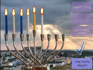 And boy did I find a lot! There are different types, shapes, colors, backgrounds, options like prayers, songs, games and the one I downloaded even had a regular burn or fast burn! You even had to move the shamash (full explanation tomorrow!) to light the other candles!