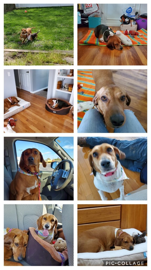 They really have brought joy into our lives, it was hard when we lost Mollie McDougal, she was such a great dog, but we knew there was love for more pups, and I honestly can’t remember which dog I saw first, Ruby or Bee, but the website said they were so bonded, they were hoping they would be adopted together. And that’s all it took! Ruby is a gorgeous dog, you should see her run! Wow! And Bee, well, Mollie, who was an American Foxhound, looked like a giant beagle, people always asked if she was one! Bee does look a little like Mollie, same coloring, but Ruby has more of her temperment, very gentle.