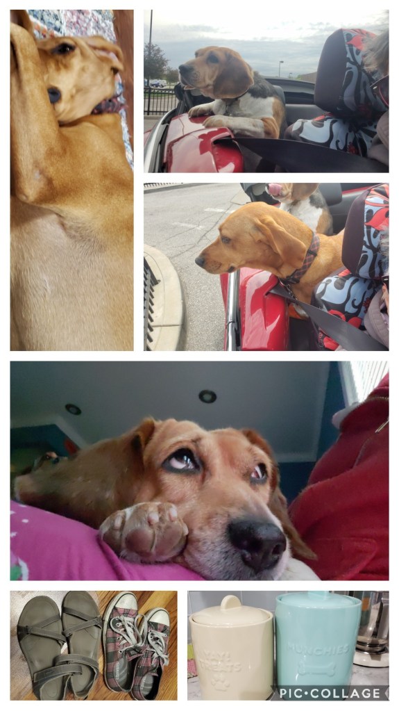 Now…I know Ruby can hear my feet on the floor when I have my Chucks on, or almost any pair of shoes, and she thinks it’s walk time! But…if I walk towards the garage with shoes on, they are both on my heels like the world is gonna end! They think I’m heading for the car and we are going for a drive! HA HA