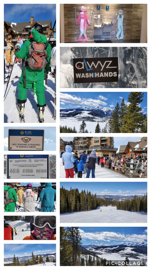 All the Vail Resorts are doing their best to abide by social distancing, there are mandatory mask signs everywhere, the gondolas and chair lifts have seating suggestions, people even putting their own stickers on things and for the lifts, I didn’t realize, but if you stand with your skis touching someone else’s skis, that’s about 6 feet, I hadn’t thought about that, well, unless it’s a kid, then it’s a little shorter!