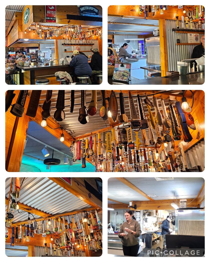 It’s an eclectic little place, had a few people in when we got there, two people at the bar, and as time went on, the place filled up, some regulars, and some passing through like us. I really liked the decorations, definitely a tap room, especially with all the beer taps hanging from the ceiling!