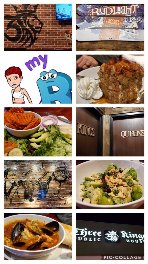 So…last night we went to yoga, then decided to go to dinner and found a place with a veggie burger, let’s go! It was the Three Kings Public House, and it was pretty good. We started off with one of the best bowl of brussel sprouts I have ever had! I think they were blanched first, they were tender and not very bitter, then they were sauteed in homemade garlic oil, topped with parmesan cheese, candied almonds, and sweetened dried cranberries. It was fabulous! I could have eaten the entire bowl!