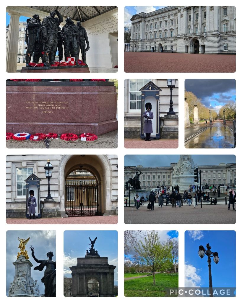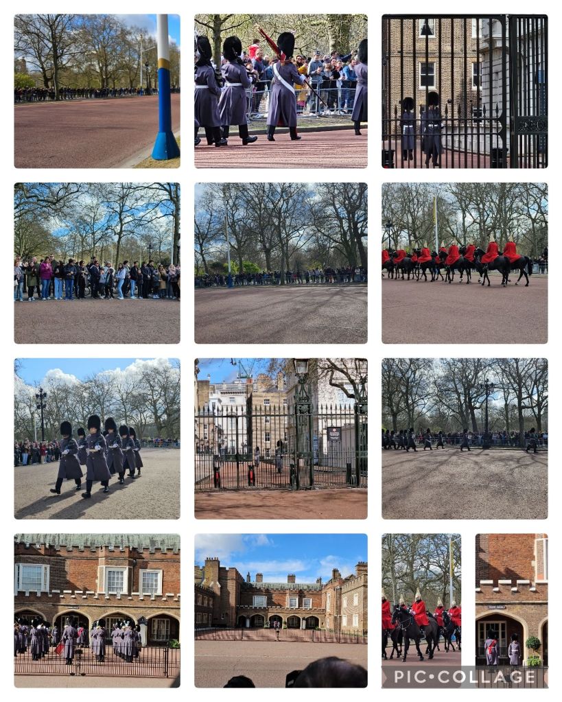 As we waited for the guards, we learned a few things. King Charles does not want to live in Buckingham Palace, understandable, with 775 rooms…it’s more of an office, so that’s why he and Queen Camilla are taking up residence at Clarence House, which only has 5 bedrooms, a little more manageable, which, was where William, the Prince of Wales had their residence, but since the King and Queen are there they’ve moved to Kensington Palace.